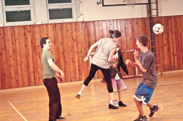 After riding and good food during the second day we went to gym, where we had a lot of fun by playing soccer. Campers could also practice some tricks on the trampoline.